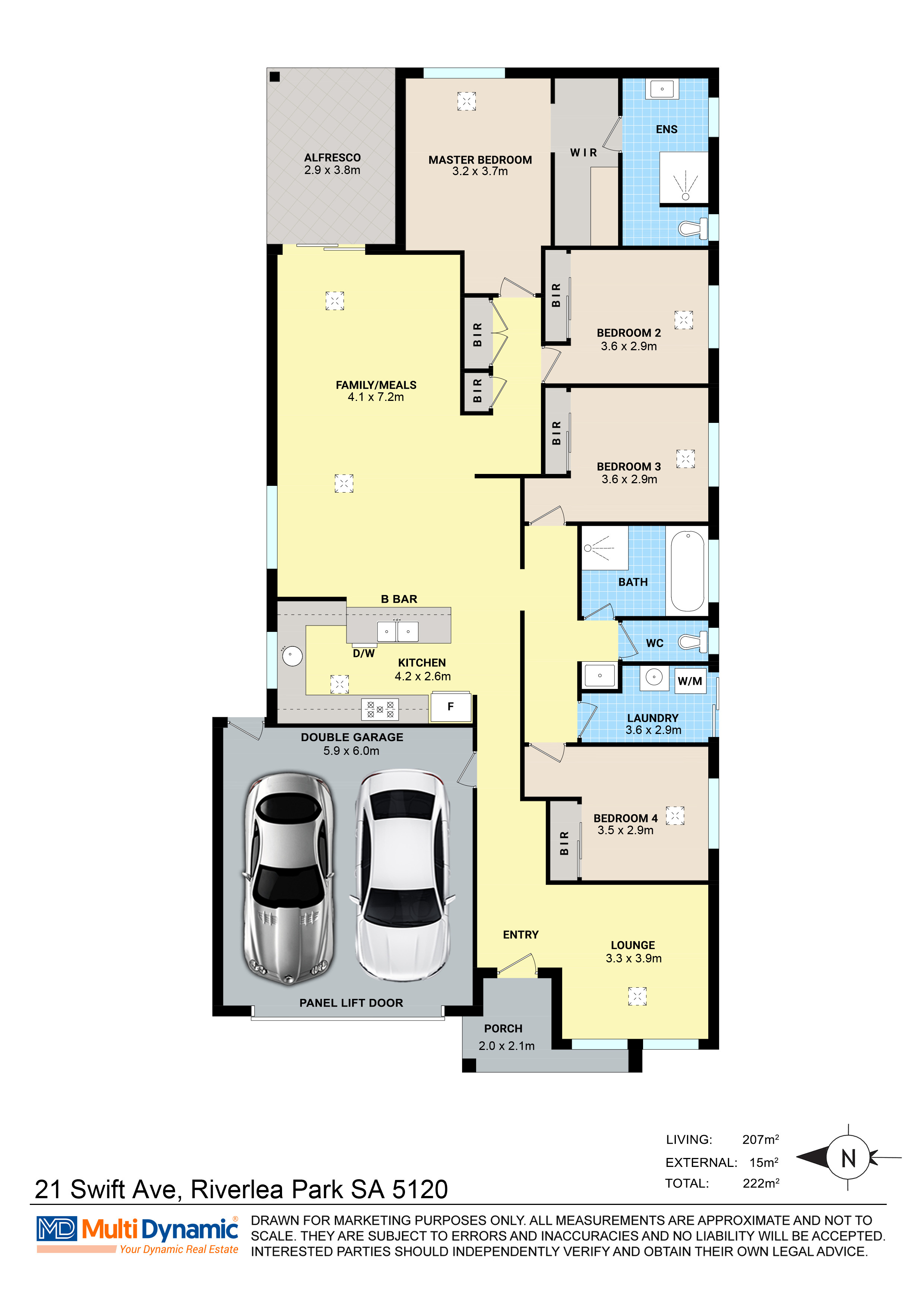 Multi Dynamic SA is proud to present this stunning brand-new home at 21 Swift Avenue, Riverlea Park. Positioned in the highly sought-after Riverlea estate, this beautifully designed residence offers approximately 222.68sqm of well-planned living space, delivering comfort, style, and functionality in one impressive package. This home has been thoughtfully crafted to provide a designer lifestyle with a warm and welcoming atmosphere. Featuring a spacious open-plan layout, premium finishes, and a private backyard, it is perfectly suited for families, professionals, or investors looking to secure a property in one of Adelaide's fastest-growing communities. Property Features 20mm stone benchtops to kitchen and bathrooms 600mm Fisher & Paykel wall oven tower with microwave provision 900mm Fisher & Paykel 5-burner gas cooktop Fisher & Paykel dishwasher Walk-in robe to master bedroom Built-in robes to all remaining bedrooms 2.7m high ceilings throughout 100% waterproof hybrid flooring to entry, kitchen, pantry, living, dining, hallway and linen areas Quality carpet to bedrooms, robes (including WIR) and home theatre Zoned ducted reverse cycle air conditioning More than just a new suburb, Riverlea represents a bold new way of living in Adelaide. Designed with innovation and community at its heart, Riverlea blends expansive open spaces, recreation areas, lakes, and waterways to create an environment focused on connection, wellbeing, and lifestyle.This is a community built for families and future growth.If you are seeking a brand-new home with premium inclusions in a thriving community, this is an opportunity not to be missed. For further information or to arrange an inspection, contact Multi Dynamic SA today. Disclaimer: All information provided has been obtained from sources we believe to be accurate; however, we cannot guarantee its accuracy and accept no liability for any errors or omissions (including but not limited to land size, floor plans, building age and condition). Interested parties should make their own enquiries and obtain independent legal advice. RLA 306771